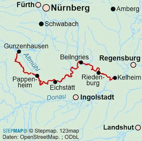 Exakte Wegbeschreibung der Strecke von Gunzenhausen bis Kehlheim in 11 Tages-Etappen, Wissenswertes für die Tourenplanung, Übernachtungsadressen, Höhenprofile, Sehenswürdigkeiten, Natur & Kultur.