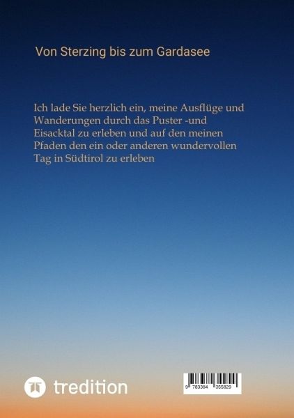 Ich lade Sie herzlich ein, meine Ausflüge und Wanderungen durch das Puster - und Eisacktal, die Dolomiten bis hin zum Gardasee zu folgen und zu erleben. Auf meinen Pfaden den ein oder anderen wundervollen Tag in Südtirol zu erleben.