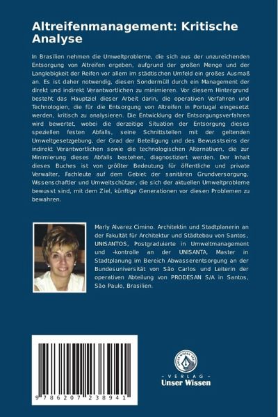 In Brasilien nehmen die Umweltprobleme, die sich aus der unzureichenden Entsorgung von Altreifen ergeben, aufgrund der großen Menge und der Langlebigkeit der Reifen vor allem im städtischen Umfeld ein großes Ausmaß an. Es ist daher notwendig, diesen Sondermüll durch ein Management der direkt und indirekt Verantwortlichen zu minimieren. Vor diesem Hintergrund besteht das Hauptziel dieser Arbeit darin, die operativen Verfahren und Technologien, die für die Entsorgung von Altreifen in Portugal eingesetzt werden, kritisch zu analysieren. Die Entwicklung der Entsorgungsverfahren wird bewertet, wobei die derzeitige Situation der Entsorgung dieses speziellen festen Abfalls, seine Schnittstellen mit der geltenden Umweltgesetzgebung, der Grad der Beteiligung und des Bewusstseins der indirekt Verantwortlichen sowie die technologischen Alternativen, die zur Minimierung dieses Abfalls bestehen, diagnostiziert werden. Der Inhalt dieses Buches ist von größter Bedeutung für öffentliche und private Verwalter, Fachleute auf dem Gebiet der sanitären Grundversorgung, Wissenschaftler und Umweltschützer, die sich der aktuellen Umweltprobleme bewusst sind, mit dem Ziel, künftige Generationen vor diesen Problemen zu bewahren.