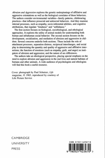 Altruism and Aggression explores the genetic underpinnings of affiliative and aggressive orientations as well as the biological correlates of these behaviors. The authors consider environmental variables--family patterns, childrearing practices--that influence prosocial and antisocial behaviors. And they examine internal processes, such as empathy, socio-inferential abilities, and cognitive attributions, that regulate 'kindness' and 'selfishness.'