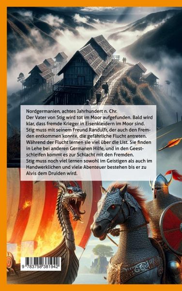 Nordgermanien im 8. Jahrhundert nach Christus: Stigs Vater wird ermordet im Moor aufgefunden. Stig und sein Freund Randulfr entdecken, dass fremde Krieger in Eisenkleidern das Moor unsicher machen. Es bleibt ihnen nichts anderes übrig, als sich auf eine gefährliche Flucht zu begeben. Sie landen auf dem Boot einiger Händler und lernen dort viel über die Möglichkeit der List. Angekommen in Lehe finden sie Hilfe bei den Germanen vor Ort. In den Geestschleifen kommt es zur Konfrontation mit den fremden Kriegern. Stig muss noch viele weitere Abenteuer bestehen, während sein Weg ihn nach Rungholmr führt, zu den Externsteinen und Aix la Chapelle. Am Ende seiner Wanderung wird er seine Bestimmung finden und zu Alvis dem Druiden werden.