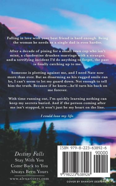 Falling in love with your best friend is hard enough. Being the woman he needs as a single dad is even harder. After a decade of pining for a small town cop who isn't mine, a clandestine drunken marriage with a stranger, and a terrifying incident I'd do anything to forget, the past is finally catching up to me. Someone is plotting against me, and I need Nate now more than ever. But as disarming as his rugged smile can be, I can't seem to let my guard down. Not enough to tell him the truth. Because if he knew...he'd turn his back on me forever. With time running out, I'm quickly learning nothing can keep my secrets buried. And if the person coming after me isn't stopped, it won't just be my heart on the line. I could lose my life.