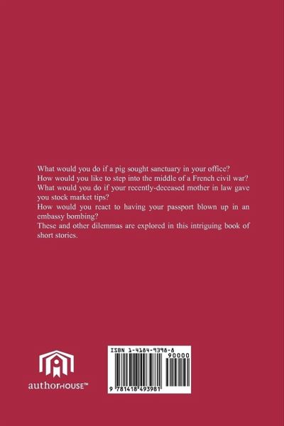 What would you do if a pig sought sanctuary in your office? How would you like to step into the middle of a French civil war? What would you do if your recently-deceased mother in law gave you stock market tips? How would you react to having your passport blown up in an embassy bombing? These and other dilemmas are explored in this intriguing book of short stories.