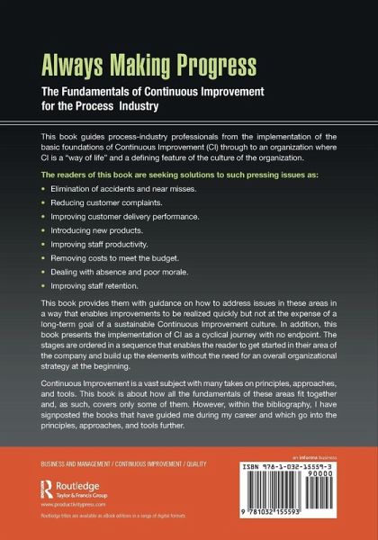 This book guides process-industry professionals from the implementation of the basic foundations of Continuous Improvement (CI) through to an organization where CI is a "way of life" and a defining feature of the culture of the organization.
