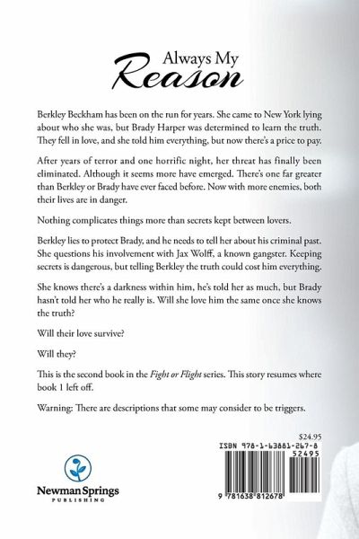 Berkley Beckham has been on the run for years. She came to New York lying about who she was, but Brady Harper was determined to learn the truth. They fell in love, and she told him everything, but now there's a price to pay. After years of terror and one horrific night, her threat has finally been eliminated. Although it seems more have emerged. There's one far greater than Berkley or Brady have ever faced before. Now with more enemies, both their lives are in danger. Nothing complicates things more than secrets kept between lovers. Berkley lies to protect Brady, and he needs to tell her about his criminal past. She questions his involvement with Jax Wolff, a known gangster. Keeping secrets is dangerous, but telling Berkley the truth could cost him everything. She knows there's a darkness within him, he's told her as much, but Brady hasn't told her who he really is. Will she love him the same once she knows the truth? Will their love survive? Will they? This is the second book in the Fight or Flight series. This story resumes where book 1 left off. Warning: There are descriptions that some may consider to be triggers.