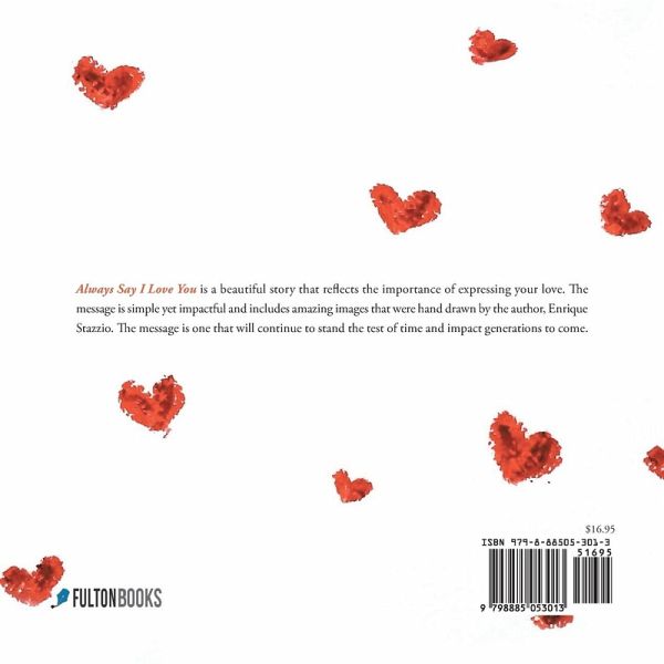 Always Say I Love You is a beautiful story that reflects the importance of expressing your love. The message is simple yet impactful and includes amazing images that were hand drawn by the author, Enrique Stazzio. The message is one that will continue to stand the test of time and impact generations to come.