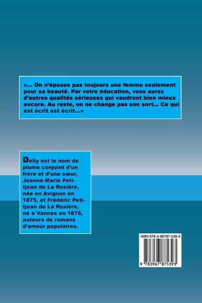 Delly est le nom de plume conjoint d'un frère et d'une soeur, Jeanne-Marie Petitjean de La Rosière, née en Avignon en 1875, et Frédéric Petitjean de La Rosière, né à Vannes en 1876, auteurs de romans d'amour populaires.