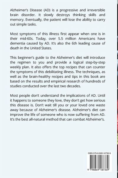 Alzheimer's Disease (AD) is a progressive and irreversible brain disorder. It slowly destroys thinking skills and memory. Eventually, the patient will lose the ability to carry out simple tasks. Most symptoms of this illness first appear when one is in their mid-60s. Today, over 5.5 million Americans have dementia caused by AD. It's also the 6th leading cause of death in the United States. According to Christopher Ochner, a Harvard-trained neurologist, the simplest prevention of the disease is eating properly. However, some people eat nutritious foods, but they still end up having Alzheimer's. So what's the secret? Healthy eating and following the Alzheimer's diet are the best dietary programs for the prevention of the onset of AD. The diet, particularly, can ease symptoms and improve memory, cognition, and longevity. Most people don't understand the implications of AD. Until it happens to someone they love, they don't get how serious this disease is. Don't wait till you or your loved one wastes away because of Alzheimer's disease. Alzheimer's diet can improve the life of someone who is now suffering from AD. It's the best all-natural method that can combat Alzheimer's. In this guide, you'll learn about the following: All about the Alzheimer's diet Benefits of the diet Food to consume and avoid in this diet Step-by-step guide in following a weekly meal plan Recipes perfect for the Alzheimer's diet The techniques, as well as the brain-healthy recipes and tips in this book, are based on the results and empirical research of hundreds of studies conducted over the last two decades. Thanks again for getting this guide. I hope you enjoy it!