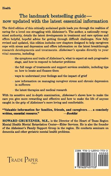 The landmark bestselling guide-now updated with the latest essential information The third edition of this critically acclaimed guide leads you through the realities of caring for a loved one struggling with Alzheimer's. The author, a nationally recognized authority, details the latest developments in treatment and care options and offers helpful, hopeful advice for getting through difficult challenges. Now fully revised and updated, this edition includes new chapters designed to help caregivers cope with stress and depression and offers information on the latest breakthrough research developments and treatments. Alzheimer’s speaks directly to your vital concerns, including: the symptoms and traits of Alzheimer’s, what to expect at each progressive stage, and how to respond to behavior problems the full range of treatments and support services available, including tips on how to locate and finance them ways to understand your feelings and the impact of grief new information on managing caregiver stress and chronic depression in sufferers the latest therapies and medical research With its sensitive and in-depth examination, Alzheimer’s shows how to make the care you give more rewarding and effective and how to make the life of anyone caught in the grip of Alzheimer’s more loving and comfortable.