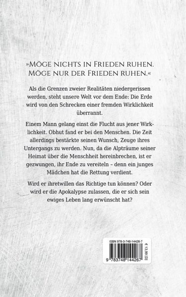 Als die Grenzen zweier Realitäten niedergerissen werden, steht unsere Welt vor dem Ende: Die Erde wird von den Schrecken einer fremden Wirklichkeit überrannt.Einem Mann gelang einst die Flucht aus jener Wirklichkeit. Obhut fand er bei den Menschen. Die Zeit allerdings bestärkte seinen Wunsch, Zeuge ihres Untergangs zu werden. Nun, da die Alpträume seiner Heimat über die Menschheit hereinbrechen, ist er gezwungen, ihr Ende zu vereiteln. Denn ein junges Mädchen hat die Rettung verdient.Wird er ihretwillen das Richtige tun können? Oder wird er die Apokalypse zulassen, die er sich sein ewiges Leben lang erwünscht hat?