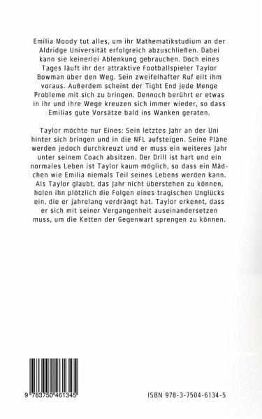 Emilia Moody tut alles, um ihr Mathematikstudium an der Aldridge Universität erfolgreich abzuschließen. Dabei kann sie keinerlei Ablenkung gebrauchen. Doch eines Tages läuft ihr der attraktive Footballspieler Taylor Bowman über den Weg. Sein zweifelhafter Ruf eilt ihm voraus. Außerdem scheint der Tight End jede Menge Probleme mit sich zu bringen. Dennoch berührt er etwas in ihr und ihre Wege kreuzen sich immer wieder, so dass Emilias gute Vorsätze bald ins Wanken geraten.Taylor möchte nur Eines: Sein letztes Jahr an der Uni hinter sich bringen und in die NFL aufsteigen. Seine Pläne werden jedoch durchkreuzt und er muss ein weiteres Jahr unter seinem Coach absitzen. Der Drill ist hart und ein normales Leben ist Taylor kaum möglich, so dass ein Mädchen wie Emilia niemals Teil seines Lebens werden kann. Als Taylor glaubt, das Jahr nicht überstehen zu können, holen ihn plötzlich die Folgen eines tragischen Unglücks ein, die er jahrelang verdrängt hat. Taylor erkennt, dass er sich mitseiner Vergangenheit auseinandersetzen muss, um die Ketten der Gegenwart sprengen zu können.