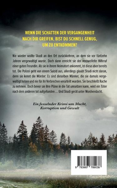 Wenn die Schatten der Vergangenheit nach dir greifen, bist du schnell genug, um zu entkommen? Ein fesselnder Krimi um Macht, Korruption und Gewalt Nie wieder wollte Shadi an den Ort zurückkehren, an dem sie vor fünfzehn Jahren vergewaltigt wurde. Doch dann erreicht sie der verzweifelte Hilferuf einer alten Freundin. Als sie in ihrem Heimatort ankommt, ist diese aber bereits tot. Die Polizei geht von einem Suizid aus, aber Shadi ist überzeugt, dass es Mord war. Sie glaubt, die Täter zu kennen. Es sind dieselben Männer, die sie damals vergewaltigt haben und nie für ihr Verbrechen verurteilt wurden. Sie beschließt, Rache zu nehmen. Doch bevor sie ihre Pläne in die Tat umsetzen kann, wird ein Täter nach dem anderen tot aufgefunden … Und Shadi gerät unter Mordverdacht. Dies ist eine überarbeitete Neuausgabe des bereits erschienenen Titels Bestrafung! Erste Leser:innenstimmen „Für mich war das mal ein Krimi der anderen Art – voller Action, Dynamik und einer impulsiven, kraftvollen Protagonistin." „Flüssig und präzise formuliert Volker Dützer die ereignisreiche Handlung, die Überfälle und Verfolgungen wirken bildreich nach und man hat das Gefühl, direkt dabei zu sein." „Für Liebhaber von spannenden Lokalkrimis!" „Ein Kriminalroman mit einem Schreibstil, der kurzweilig ist und von Anfang bis Ende sehr gut unterhält."