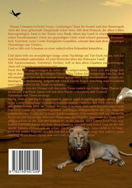 Pharao Echnaton befiehlt Neues, Großartiges! Mit dem Wunsch, die übermächtigen Götter hinwegzufegen, baut er dem Sonnengott Aton die strahlende Hauptstadt Achet-Aton, stürzt das Land in einen enthusiastischen Freudentaumel. Doch aus gepredigter Liebe wird schnell grausame Besessenheit. Nofretete, seine Königin, schenkt ihm statt dem ehrsehnten Thronfolger nur Töchter. Und so läßt Echnaton sich zu einer unheilvollen Schandtat hinreißen ... Ein neunjähriger Junge tritt seine Nachfolge an! Tut-Ench-Amun, von Eje und Haremhab unterstützt, ist jetzt Herrscher über das Schwarze Land! Mit Anchesenamun, Nofretetes Tochter, will er den alten Glauben zurückbringen, Aton soll von nun an vergessen sein. Doch frei und ungezwungen in Achet-Aton aufgewachsen, fühlt sich der junge König eingeengt, von Eje, dem übermächtigen Tjai chu her wenemi Nesu, geknechtet, folgt er schließlich seinem unbändigen Freiheitsdrang, entgeht mit Glück einem feigen Anschlag und beschließt sein Leben selbst in die Hand zu nehmen. Nach Jahren fern der Heimat ruft ihn seine Treue zurück. Pharao Eje ist tot und Tut-Ench-Amun will mit aller Macht verhindern, daß General Haremhab den Thron besteigt. Kann Tut seinen Thron und vor allem das Herz seiner Königin zurückgewinnen? Denn sie lebt der Welt entrückt, mit gebrochenem Herzen im Tempel der Isis und Tut-Ench-Amun muß der furchterregenden, mächtigen Hohepriesterin der Isis, Sahu-Re, entgegentreten ...
