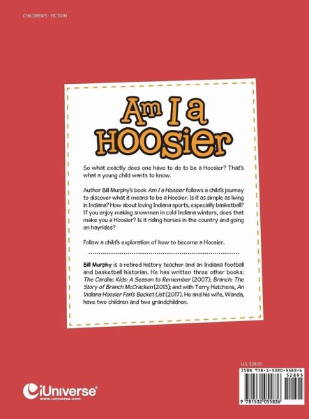 So what exactly does one have to do to be a Hoosier? Thats what a young child wants to know. Author Bill Murphys book Am I a Hoosier follows a childs journey to discover what it means to be a Hoosier. Is it as simple as living in Indiana? How about loving Indiana sports, especially basketball? If you enjoy making snowmen in cold Indiana winters, does that make you a Hoosier? Is it riding horses in the country and going on hayrides? Follow a childs exploration of how to become a Hoosier.