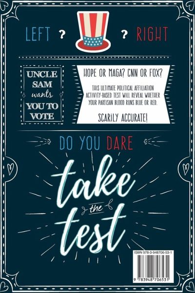 Can a Puzzle Book Reveal the Political Party That Fits Your Personality? This Ultimate Political Affiliation Test Book contains pages and pages of hilarious, politics-inspired puzzles and brainteasers that will reveal whether your partisan blood runs blue or red (or a shade of purple). Light-hearted by design, the cute nature of activities won't offend or exclude anyone. And when the results are in (individual results given at the end of the book!), you'll have a concrete* idea of which political party will get your vote. Part of the "Am I" series by Jest Fest, this funny adult puzzle book is a great office or birthday prank gift for your friends, parents, grandparents, siblings, in-laws, cousins, colleagues, and just about anyone with a sense of humor. Get a second one for yourself to enjoy during some downtime. Includes a Bonus chapter to keep the laughter going after the activities are done. *Disclaimer: The results achieved from the activities in this book have not been clinically proven or evaluated by the FDA, EPA, WHO, NWO or the Illuminati. For professional advice, please consult your local Flat Earth Society.