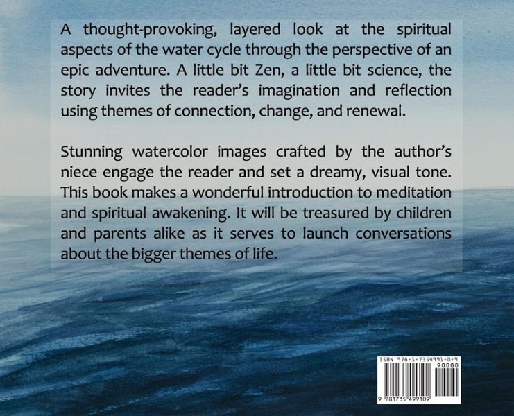 A thought-provoking, layered look at the spiritual aspects of the water cycle through the perspective of an epic adventure. A little bit Zen, a little bit science, the story invites the reader's imagination and reflection using themes of connection, change, and renewal. Stunning watercolor images crafted by the author's niece engage the reader and set a dreamy, visual tone. This book makes a wonderful introduction to meditation and spiritual awakening. It will be treasured by children and parents alike as it serves to launch conversations about the bigger themes of life.