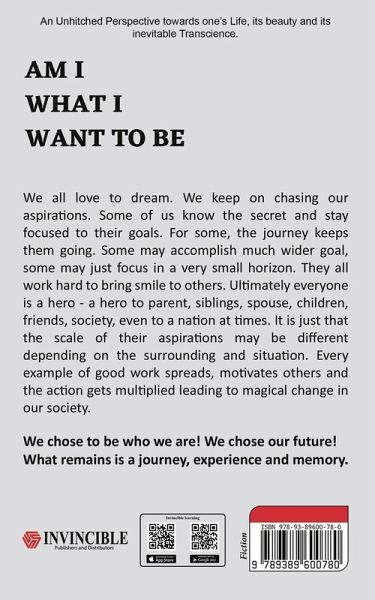 About the BookThe book Am I What I Want To Be will connect you to your past and remind you about those 'wishes' that may have gone under the cover.The book will reveal that we chose our future! We chose to be who we are! What remains is a journey, experience and memory.