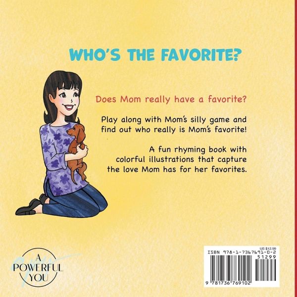Join mom on her journey to answer the question "Am I Your Favorite?". She plays a silly game as she shares all her favorite things about her children. Read along with fun rhymes and beautiful illustrations. Perfect for children ages 3-7. Rhyming stories help kids learn to read and understand language earlier. Grab a copy for all YOUR favorites and visit the author's website for bonus content.