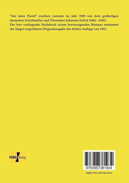 "Am toten Punkt" erschien erstmals im Jahr 1909 von dem großartigen deutschen Schriftsteller und Übersetzer Johannes Schlaf (1862 - 1941).