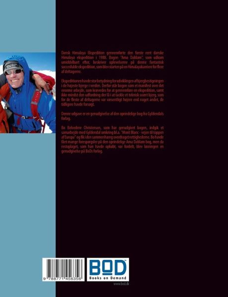 Dansk Himalaya Ekspedition gennemførte den første rent danske Himalaya ekspedition i 1988. Bogen "Ama Dablam", som udkom umiddelbart efter, beskriver oplevelserne på denne fantastisk succesfulde ekspedition, som blev starten på en Himalayakarriere for flere af deltagerne. Ekspeditionen havde stor betydning for udviklingen af bjergbestigningen i de højeste bjerge i verden. Derfor står bogen som et manifest over det enorme arbejde, som krævedes for at gennemføre en ekspedition, samt ikke mindst den udfordring der lå i at tackle et teknisk svært bjerg, som for de fleste af deltagerne var væsentligt højere end noget andet, de tidligere havde forsøgt. Denne udgave er en genudgivelse af den oprindelige bog fra Gyldendals forlag. Bo Belvedere Christensen, som har genudgivet bogen, indgik et samarbejde med Gyldendal omkring bl.a. "Mont Blanc - vejen til toppen af Europa" og fik i den sammenhæng overdraget rettighederne. Bo havde fået mange forespørgsler på den oprindelige Ama Dablam bog, men da restoplaget, som han havde opkøbt, var fordelt, blev løsningen en genudgivelse på BoDs forlag.