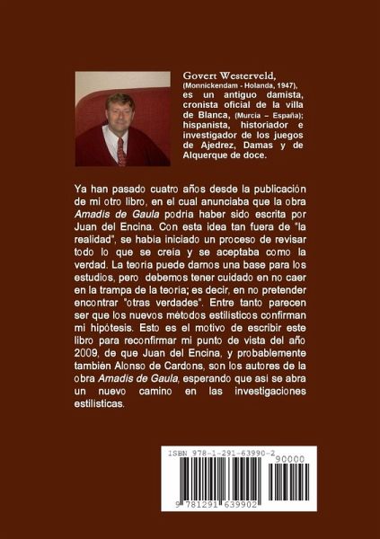 Ya han pasado cuatro años desde la publicación de mi otro libro, en el cual anunciaba que la obra Amadís de Gaula podría haber sido escrita por Juan del Encina. Con esta idea tan fuera de "la realidad", se había iniciado un proceso de revisar todo lo que se creía y se aceptaba como la verdad. La teoría puede darnos una base para los estudios, pero debemos tener cuidado en no caer en la trampa de la teoría; es decir, en no pretender encontrar "otras verdades". Entre tanto parecen ser que los nuevos métodos estilísticos confirman mi hipótesis. Esto es el motivo de escribir este libro para reconfirmar mi punto de vista del año 2009, de que Juan del Encina, y probablemente Alonso de Cardona, son los autores de la obra Amadís de Gaula, esperando que se abra un nuevo camino en las investigaciones estilísticas.