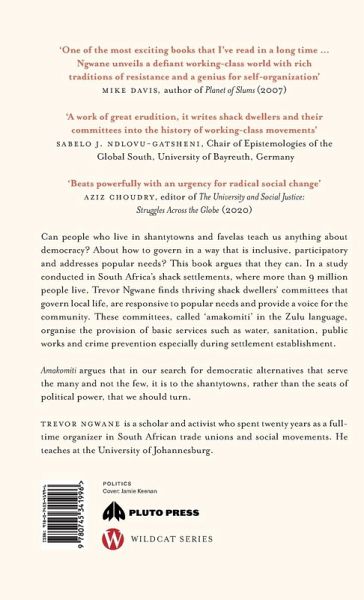 Can people who live in shantytowns, shacks and favelas teach us anything about democracy? About how to govern society in a way that is inclusive, participatory and addresses popular needs? This book argues that they can. In a study conducted in dozens of South Africa's shack settlements, where more than 9 million people live, Trevor Ngwane finds thriving shack dwellers' committees that govern local life, are responsive to popular needs and provide a voice for the community. These committees, called 'amakomiti' in the Zulu language, organise the provision of basic services such as water, sanitation, public works and crime prevention especially during settlement establishment. Amakomiti argues that, contrary to common perception, slum dwellers are in fact an essential part of the urban population, whose political agency must be recognised and respected. In a world searching for democratic alternatives that serve the many and not the few, it is to the shantytowns, rather than the seats of political power, that we should turn.