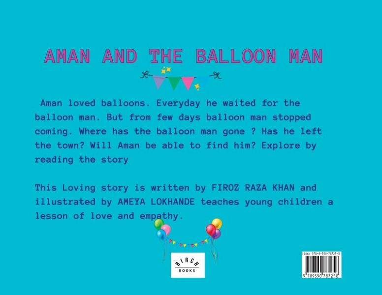 Aman loved balloons. Everyday he waited for theballoon man. But from few days balloon man stoppedcoming. Where has the balloon man gone ? Has he left the town? Will Aman be able to find him? eExplore by reading the story. This Loving story is written by FIROZ RAZA KHAN andillustrated by AMEYA LOKHANDE teaches young children alesson of love and empathy.