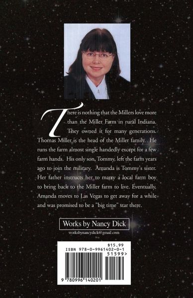 Amanda goes to Las Vegas REVISED EDITION by Nancy Dick is an exciting romance book that begins in rural Indiana on the Miller Farm where the main character, Amanda Miller, grew up with her parents, Tom and Carolyn and her brother, Tommy. And, the book leads us to Las Vegas as we follow Amanda and what happens to her throughout the book. This book is both glamourous and fun! Amanda Miller doesn't want to come to Las Vegas since lots of people come to Las Vegas for vacations and such. Amanda Miller, in contrast, GOES to Las Vegas on a mission to be a"big time" star there. She is on a "fast track" to fame and fortune! Soon, she would be driving in a limo; sleeping in a penthouse; and dripping in furs and diamonds she thinks! She knows a "big time" talent agent in Las Vegas who will hook her up with jobs on the world famous Strip to work with the other stars and get her a record album worth millions! But, she soon learns upon arriving that her talent agent to the stars is really a flat broke manager of a slum apartment house in one of the worse neighborhoods in town. Flat broke herself, she agrees to live in one of his spare rooms of his apartment to help her get on her feet. Soon, she is on top of the world, working a job as a telemarketer in one of the call centers there! It is a start anyway! But, it is a far cry away from the life she had anticipated! Keeping the news from her parents and her family back home, Amandaplans to never let her folks know the truth about her situation. They have their hopes pinned on her success in Las Vegas! They needed the money sent back home from her record album contracts and concerts on the world famous Strip to save the family farm that back home was in the family for many generations! Her only brother, Tommy, was off in the military with no sign he was returning back home to the farm any time soon. Amanda's father, Tom, feared he would someday become too old, on top of everything, to be able to run the farm himself. Amanda always secretly wished she was the son her father needed to provide the physical strength to help out on the farm. Unsuccessful with marrying into a family who would give her a husband with family to help out and financial strength to save the Mill Farm, what was left for Amanda to do to please her father she loved so dearly and the family farm she grew up at was to use her youth and beauty and singing voice people told her they loved to hear to save the day with the millions Amanda was, in effect, promised if she would just go to LasVegas to audition before this talent agent to the stars. She had an "in" since the talent agent was related to her old boss, Bryan,who offered this to her since he felt sorry for her in her time of grief at such a young age of losing the man she was planning on marrying who had suddenly died. Bryan, wanted to give her a break! He offered his cousin, Manny, a "big time" talent agent to the stars in Las Vegas to give her a much deserved life of glamour and luxury and stardom instead of the life she had. Amanda Goes to Las Vegas has many twists and turns to it so that the reader is in suspense until the very end of the book. In the end Amanda does save her family