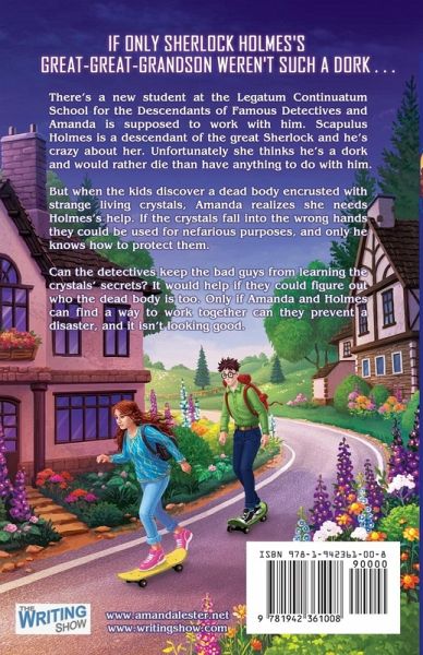 There's a new student at the Legatum Continuatum School for the Descendants of Famous Detectives and Amanda is supposed to work with him. Scapulus Holmes is a descendant of the great Sherlock and he's crazy about her. Unfortunately she thinks he's a loser and would rather die than have anything to do with him. But when the kids discover a dead body encrusted with strange living crystals, Amanda realizes she needs Holmes's help. If the crystals fall into the wrong hands they could be used for nefarious purposes, and only he knows how to protect them. Can the detectives keep the bad guys from learning the crystals' secrets? It would help if they could figure out who the dead body is too. Only if Amanda and Holmes can find a way to work together can they prevent a disaster, and it isn't looking good.