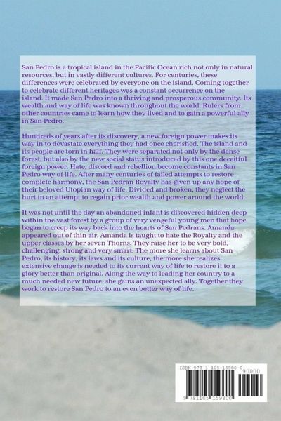 San Pedro is a tropical island rich in natural resources and unique cultures. For centuries these differences were celebrated equally on the island. Its wealth and way of life were known all over the world. Foreign rulers came to learn how they lived and to gain a powerful ally in San Pedro. Centuries after its discovery, a foreigner devastated everything they had once cherished. The island is torn in half by the new classes introduced by a deceitful ruler. Divided and broken, rulers neglect the hurt and attempt to regain their wealth and power. Amanda appeared out of thin air to give hope. Amanda was taught to hate the wealthy by heroes. They raised her to be very bold and very smart. The more she learned about San Pedro, the more she realized extensive change was needed to restore it to a glory better than original. Along the way to leading her country to a much needed new future, she gains an unexpected ally. Together they work to restore San Pedro to an even better way of life.