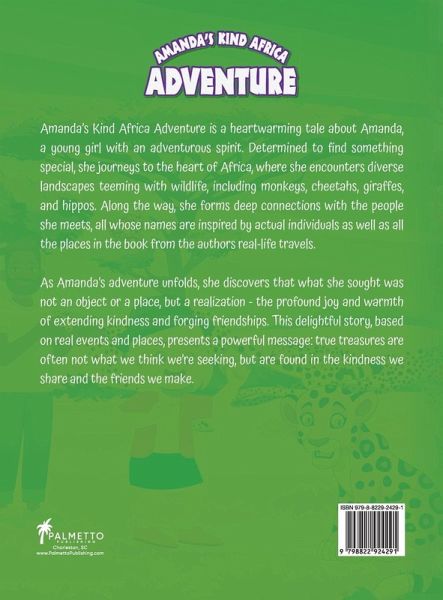Experience the enchanting allure of Africa with young Amanda, as she embarks on an unexpected journey of kindness, discovery, and new friendships. Journey into the heart of Africa with young Amanda in the captivating children's book, Amanda's Kind Africa Adventure. This enchanting tale, inspired by real events, chronicles Amanda's quest to find something special, leading her to breathtaking landscapes teeming with fascinating wildlife like monkeys, cheetahs, giraffes, and hippos. With each thrilling encounter and new place visited, Amanda forms strong bonds with the wonderful individuals she meets, all named after real people the author encountered during her own travels in Africa. As Amanda's adventure unfolds, she makes a surprising discovery. The 'something special' she has been searching for isn't a tangible object or a grand place, but the profound realization of the value of kindness and the magic of making friends. Written by Nicole Hopf, an educator with a passion for instilling kindness and empathy in young minds, this tale weaves together her firsthand experiences from her memorable trip to Africa in 2013 with a beautiful narrative that will surely captivate young readers. Amanda's Kind Africa Adventure is more than just a story; it's a testament to the importance of friendship, compassion, and the wondrous discoveries that can come from being open-hearted and kind. Embark on this unforgettable journey and see the world through Amanda's curious eyes. Explore, learn, and most importantly, understand that the greatest adventure lies in kind acts and heartwarming friendships. Discover Africa in a whole new light and see how kindness can truly lead to magical encounters.