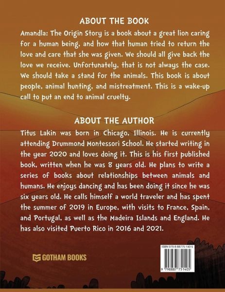 Amandla: The Origin Story is a book about a great lion caring for a human being, and how that human tried to return the love and care that she was given. We should all give back the love we receive. Unfortunately, that is not always the case. We should take a stand for the animals. This book is about people, animal hunting, and mistreatment. This is a wake-up call to put an end to animal cruelty.