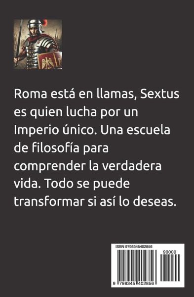 El autor Eduardo Agüera, vuelve publicar una nueva novela, posee más de trescientas. Esta historia me ha atrapado. La vida está llena de sorpresas, desde que conocí esta novela, la recomiendo. Este libro me ha encantado. Todos sus libros me han llevado a lugares muy hermosos. Me ha gustado mucho esta historia, he vivido todo como si fuera el protagonista. >-Necesito la luz de todas las personas de Roma, la unión hace una fuerza majestuosa. Una historia arrolladora, de principio a fin, con una atmósfera histórica que nunca olvidarás. La batalla en honor a Roma comienza... Cuando la ambición supera la lealtad. LAS CONQUISTAS QUE MARCARON UNA ERA. LA HISTORIA DE UN HOMBRE ENTRE LA GLORIA Y EL PELIGRO. Roma se extiende como una sombra imparable sobre el Mediterráneo y las regiones que se abren camino hacia nuevas tierras, Sextus, un soldado legionario fue abandonado en un desierto de camino hacia Cartago. Resurge con victorioso apego a la vida. Regresa a Roma para servir en paz y ayudar a los ciudadanos. Guerras civiles, Julio César quiere el Imperio, pero no todos están de acuerdo por ser el nuevo cónsul. Sextus consigue ser senador y hace que Roma vuelva a brillar de una forma luminosa. Honor y traición, sacrificio personal frente al deber, intrigas políticas en el Senado, por el poder de la ambición y la lucha por el amor en medio del deber. Roma vuelve su esplendor.