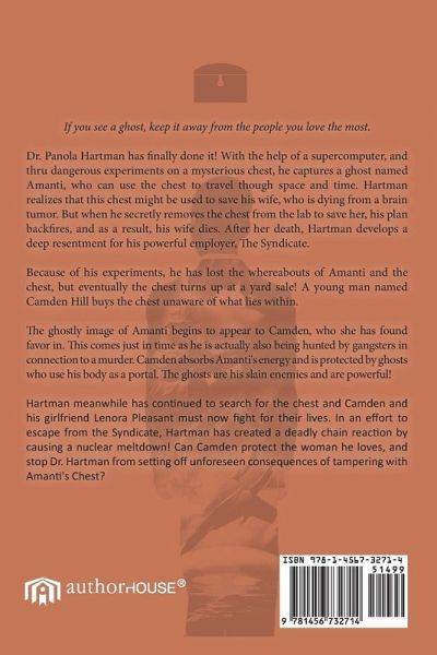 If you see a ghost, keep it away from the people you love the most. Dr. Panola Hartman has finally done it! With the help of a supercomputer, and thru dangerous experiments on a mysterious chest, he captures a ghost named Amanti, who can use the chest to travel though space and time. Hartman realizes that this chest might be used to save his wife, who is dying from a brain tumor. But when he secretly removes the chest from the lab to save her, his plan backfires, and as a result, his wife dies. After her death, Hartman develops a deep resentment for his powerful employer, The Syndicate. Because of his experiments, he has lost the whereabouts of Amanti and the chest, but eventually the chest turns up at a yard sale! A young man named Camden Hill buys the chest unaware of what lies within. The ghostly image of Amanti begins to appear to Camden, who she has found favor in. This comes just in time as he is actually also being hunted by gangsters in connection to a murder. Camden absorbs Amanti's energy and is protected by ghosts who use his body as a portal. The ghosts are his slain enemies and are powerful! Hartman meanwhile has continued to search for the chest and Camden and his girlfriend Lenora Pleasant must now fight for their lives. In an effort to escape from the Syndicate, Hartman has created a deadly chain reaction by causing a nuclear meltdown! Can Camden protect the woman he loves, and stop Dr. Hartman from setting off unforeseen consequences of tampering with Amanti's Chest?
