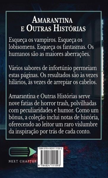 Esqueça os vampiros. Esqueça os lobisomens. Esqueça os fantasmas. Os humanos são as maiores aberrações. Vários sabores de infortúnio permeiam estas páginas. Os resultados são às vezes hilários, às vezes de arrepiar os cabelos. Amarantina e Outras Histórias serve nove fatias de horror trash, polvilhadas com peculiaridades e humor. Como um bônus, a coleção inclui notas de história, oferecendo ao leitor um raro vislumbre da inspiração por trás de cada conto.