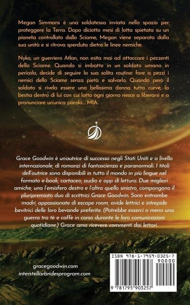 Megan Simmons è una soldatessa inviata nello spazio per proteggere la Terra. Dopo diciotto mesi di lotta spietata su un pianeta controllato dallo Sciame, Megan viene separata dalla sua unità e si ritrova sperduta dietro le linee nemiche. Nyko, un guerriero Atlan, non esita mai ad attaccare i pezzenti dello Sciame. Quando si imbatte in un soldato umano in pericolo, decide di seguire la sua solita routine: fare a pezzi i nemici dello Sciame senza pietà e salvarlo. Quando però il soldato si rivela essere una bellissima donna tutta curve, la bestia dentro di lui con cui lotta ogni giorno riesce a liberarsi e a pronunciare un’unica parola… MIA.…mehr