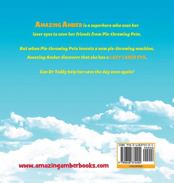 Amazing Amber is a superhero who uses her laser eyes to save her friends from Pie-throwing Pete. But when Pie-throwing Pete invents a new pie-throwing machine, Amazing Amber discovers that she has a lazy laser eye. Can Dr Teddy help her save the day once again?
