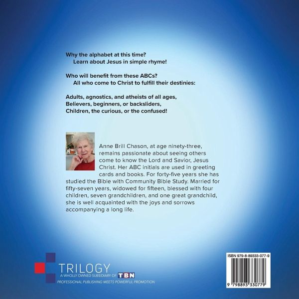 Why the alphabet at this time? Learn about Jesus in simple rhyme! Who will benefit from these ABCs? All who come to Christ to fulfill their destinies: Adults, agnostics, and atheists of all ages, Believers, beginners, or backsliders, Children, the curious, or the confused!