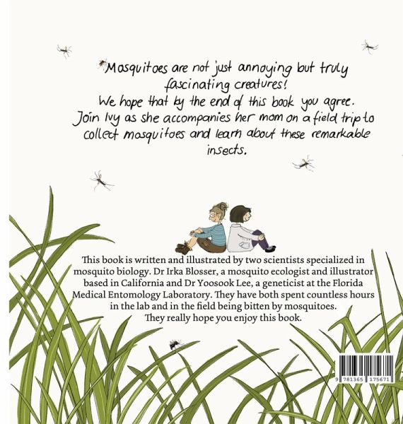 Mosquitoes are not just annoying but truly fascinating creatures! We hope that by the end of this book you agree. Join Ivy as she accompanies her mom on a field trip to collect mosquitoes and learn about these remarkable insects. This book is written and illustrated by two scientists specialized in mosquito biology. Dr. Irka Blosser, a mosquito ecologist and illustrator based in California and Dr. Yoosook Lee, a geneticist at the Florida Medical Entomology Laboratory. They have both spent countless hours in the lab and in the field being bitten by mosquitoes. They really hope you enjoy this book.
