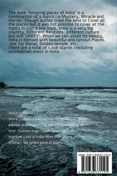 The book 'Amazing places of India' is a combination of 3 topics i.e Mystery, Miracle and Horror. Though author tried the best to Cover all the places but it was not possible to cover all the topics in just a one book. India is a very big country, bifferent Religions, different culture but still 'UNITY'. When we talk about its beauty, India is blessed with beautiful and famous Places, like Taj Mahal, Golden temple, etc. There are a total of 1,208 islands (including uninhabited ones) in India. This book includes chapters like North sentinel, Barren island, Magnetic hill,The Lake Of Skeletons etc. The places which are still a mystery for everyone.