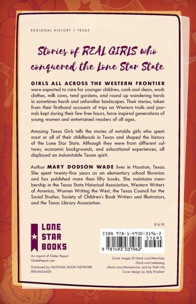 Girls on the Western Frontier were expected to care for younger children, cook and clean, wash clothes, milk cows, tend gardens, and round up wandering herds in a harsh and unfamiliar landscape. Their stories, often taken from their first-hand accounts of trips on Western trails and journals kept during their few free hours, have been inspiring generations of young women and entertaining readers of all ages. Amazing Texas Girls tells the stories of notable girls who spent most or all of their childhood in Texas And shaped the history of the Lone Star State. Although from different cultures, economic status, education, and notoriety, all displayed an indomitable Texas spirit. Each chapter tells the story of a girl's life (17 years old or younger), offering complete biographical information, but focusing on the girl's remarkable childhood. Readers will never forget these stories of real girls who conquered the West in their own style.