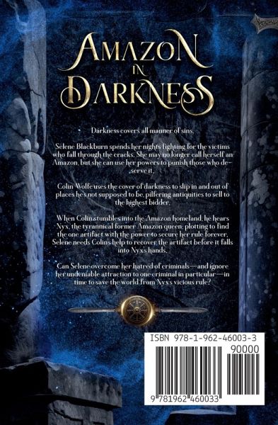 Darkness covers all manner of sins. Selene Blackburn spends her nights fighting for the victims who fall through the cracks. She may no longer call herself an Amazon, but she can use her powers to punish those who deserve it. Colin Wolfe uses the cover of darkness to slip in and out of places he's not supposed to be, pilfering antiquities to sell to the highest bidder. When Colin stumbles into the Amazon homeland, he hears Nyx, the tyrannical former Amazon queen, plotting to find the one artifact with the power to secure her rule forever. Selene needs Colin's help to recover the artifact before it falls into Nyx's hands. Can Selene overcome her hatred of criminals-and ignore her undeniable attraction to one criminal in particular-in time to save the world from Nyx's vicious rule?