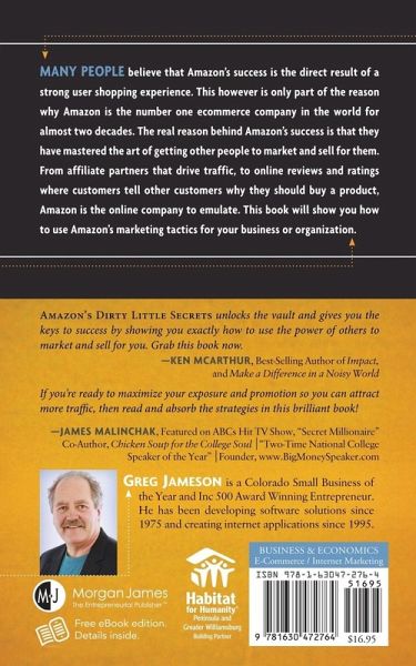 Many people believe that Amazon's success is the direct result of a strong user shopping experience. This however is only part of the reason why Amazon is the number one ecommerce company in the world for almost two decades. The real reason behind Amazon's success is that they have mastered the art of getting other people to market and sell for them. From affiliate partners that drive traffic, to online reviews and ratings where customers tell other customers why they should buy a product, to getting free publicity from shows like Oprah or 60 Minutes, Amazon is the online company to emulate.…mehr