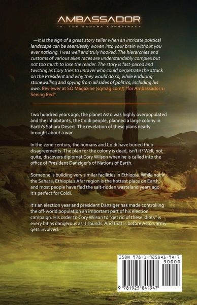3 December 2114. Cory Wilson is woken in the middle of the night with a summons to appear in the president of Nations of Earth’s office. An aid worker in Djibouti has discovered a shipment of alien guns. As ambassador to gamra, the extraterrestrial organisation which controls the Exchange, the FTL wormhole network, Cory has often been critical of Earth’s handling of extraterrestrial problems. This is his moment to shine, to apply his knowledge about alien customs, to, in the words of the president, "get those idiots out of there". Except the usual suspects, the Zhori mafia who have caused trouble on Earth for a long time, are nowhere to be seen. This is something far more dangerous, something that involves all of northern Africa, something that provokes the anger of Asto, gamra’s largest world. Asto’s army is already prowling in orbit, ready to strike.