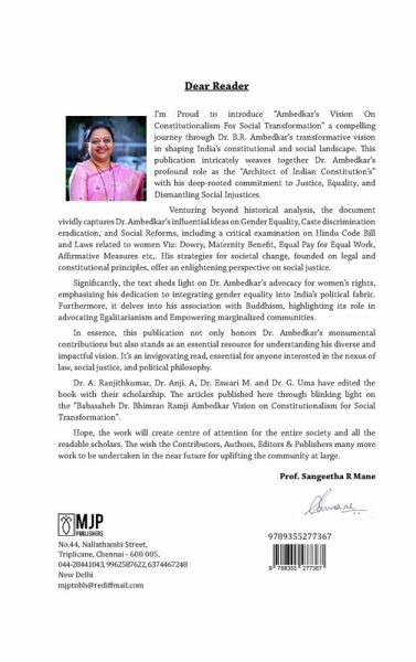 The Discourse on Women's Emancipation Through Dr.B.R. Ambedkar Perspective, Ambedkar's Perspective on Elimination of Injustice, Equality: Dr.Bhimrao Ambedkar, Issues and challenges of gender Equality in Indian education system, Ambedkar's View and Contradictory Condition: Study on Dowry System in the Present Scenario in Kerala, Dr. B.R. Ambedkar and Caste, Dr. B.R. Ambedkar & Gender Equality, A Empirical Study on Ambedkar's Views on Education in the present Society, Dr.B.R. Ambedakar & Buddisum, Women Empowerment in India, Dr.B.R Ambedkar's Views on Education System, Dr. Ambedkar and Caste System In India, Dr. Babasaheb Ambedkar Perspective on Women Empowerment: Evidence from Rural Women in Dindigul district, Dr. B.R. Ambedkar's View on Humanism & Buddhism, Constitutionalism and Women Empowerment:Dr B.R Ambedkar's Perspective, Caste System in the 21st Century & In equalities- A study, Babasaheb Dr.Ambedkar's Thoughts on Social Exclusion & Inclusion, Ambedkar and the Hindu Code Bill: A Women's Rights Movement, Dr. B.R Ambedkar's Perspectives on Nation Building in India, An Analysis Role on Dr. B R Ambedkar Towards Women Progress, "Liberating and Strengthening Indian Women: An Analysis of Dr. B. R. Ambedkar's Contribution", Ambedkar's Perspectives on the Economic Implications of Decentralized Governance in Tamil Nadu