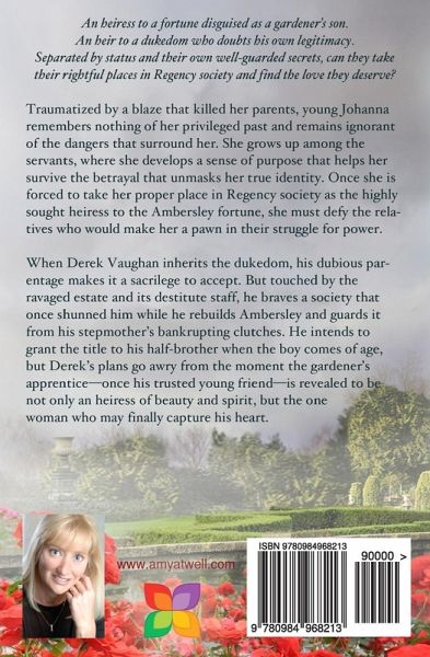 An heiress to a fortune disguised as a gardener's son. An heir to a dukedom who doubts his own legitimacy. Separated by status and their own well-guarded secrets, can they take their rightful places in Regency society and find the love they deserve? Traumatized by a blaze that killed her parents, young Johanna remembers nothing of her privileged past and remains ignorant of the dangers that surround her. She grows up among the servants, where she develops a sense of purpose that helps her survive the betrayal that unmasks her true identity. Once she is forced to take her proper place in Regency society as the highly sought heiress to the Ambersley fortune, she must defy the relatives who would make her a pawn in their struggle for power. When Derek Vaughan inherits the dukedom, his dubious parentage makes it a sacrilege to accept. But touched by the ravaged estate and its destitute staff, he braves a society that once shunned him while he rebuilds Ambersley and guards it from his stepmother's bankrupting clutches. He intends to grant the title to his half-brother when the boy comes of age, but Derek's plans go awry from the moment the gardener's apprentice-once his trusted young friend-is revealed to be not only an heiress of beauty and spirit, but the one woman who may finally capture his heart.
