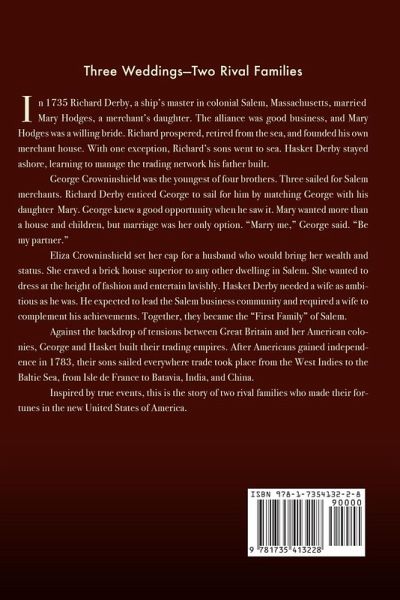 2023 Goethe Prize Semi-Finalist in Late Historical Fiction "Wagner-Wright's prose is both engaging and descriptive, and her attention to detail and passion for the families' history shines through with every word." - The BookLife Prize "Wagner-Wright breathes life into the world through the vernacular of the time and rich descriptions of the dress, table settings, and social decorum, developing a vivid view of Colonial America." - Chanticleer Book Reviews www.ChantiReviews.com "[A] transportive historical novel of Colonial marriage, shipping, and life." -Booklife "If you love Jane Austin, you will love Sandra Wagner-Wright." - Reader's Favorite "Sandra Wagner-Wright is an excellent storyteller with a natural flair for historical accuracy and powerful character development." -Seattle Book Review In 18th Century Salem, Massachusetts, the ambitious Derby and Crowninshield families vie for power amid a shifting social and political landscape. After the heartbreaking loss of their first child, Mary Hodges Derby and her husband Captain Richard Derby are blessed with a healthy son named Richard who is soon followed by four brothers and three sisters. All but one of the Derby boys follow their father to sea to secure their fortunes from America's lucrative but treacherous trade routes to the West Indies and beyond. When Captain Derby's oldest son comes of age, he decides to retire from the sea and establish a merchant house. Two of Richard's brothers follow him as captains of their own ships, but Captain Derby keeps his son Hasket ashore to manage the family's growing trade network. George Crowninshield, the youngest of four brothers, sails for the Derby family enterprise and ultimately marries Hasket's sister Mary. Meanwhile, George's sister Eliza makes a match with Hasket Derby. Though the two families are united by wedlock, rivalries, political turmoil, and questionable choices reveal the complex consequences of unchecked ambition, arrogance, and pride. Set during a pivotal time in Salem's history when Americans broke their colonial ties with Great Britain, this gripping work of historical fiction explores the depth of human relationships through nuanced characters and vivid historical details. Recipes from the era bring the sights and flavors of 18th century Salem to life, while a glossary illuminates the context of the times. If you enjoy books by John Jakes, you will enjoy reading about the Crowninshield and Derby families in 18thcentury Salem, Massachusetts. Perfect for fans of early American history and atmospheric fiction, this novel offers an intimate look at life in colonial New England.