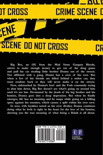 Big Bro, an OG from the Mad Stone Gangsta Bloods, strives to make enough money to get out of the drug game and pull his car stealing little brother Drama out of the streets. Not affiliated with a gang, Drama has a crew of his own. But when a few of his friends are killed behind a stolen car, they must retaliate back or they will never make it on the streets. Now, sidetracked by Drama's beef and the Feds constantly trying to shut him down, Big Bro doesn't see what's going on around him until it's too late. Devastated by the death of his big brother and his homies, Drama goes into a deep depression. But when he finally emerges, life has no meaning and he snaps while going on a killing spree against his enemies, which causes a split within his own crew. So now, with loyalties tested as his crew divides, Drama continues doing what he feels is right in his heart for the love of his homies, showing you the true meaning of what being a Ridah is all about.