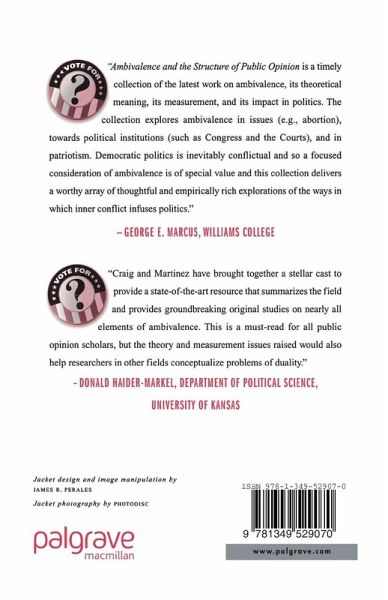 "Ambivalence and the Structure of Public Opinion is a timely collection of the latest work on ambivalence, its theoretical meaning, its measurement, and its impact in politics. The collection explores ambivalence in issues (e.g., abortion), towards political institutions (such as Congress and the Courts), and in patriotism. Democratic politics is inevitably conflictual and so a focused consideration of ambivalence is of special value and this collection delivers a worthy array of thoughtful and empirically rich explorations of the ways in which inner conflict infuses politics." - George E. Marcus, Williams College