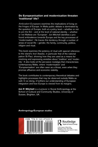 Ambivalent Europeans examines the implications of living on the fringes of Europe. In Malta, public debate is dominated by the question of Europe, both at a policy level - whether or not to join the EU - and at the level of national identity - whether or not the Maltese are 'European'. Jon Mitchell identifies a profound ambivalence towards Europe, and also more broadly to the key processes of 'modernisation'. He traces this tendency through a number of key areas of social life - gender, the family, community, politics, religion and ritual.